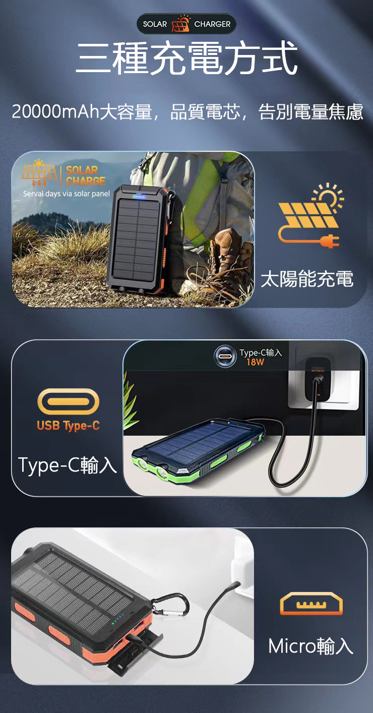 半小時前太陽能行動電源 - 【團購優惠】太陽能行動電源3入組僅需-NT$ 1599
