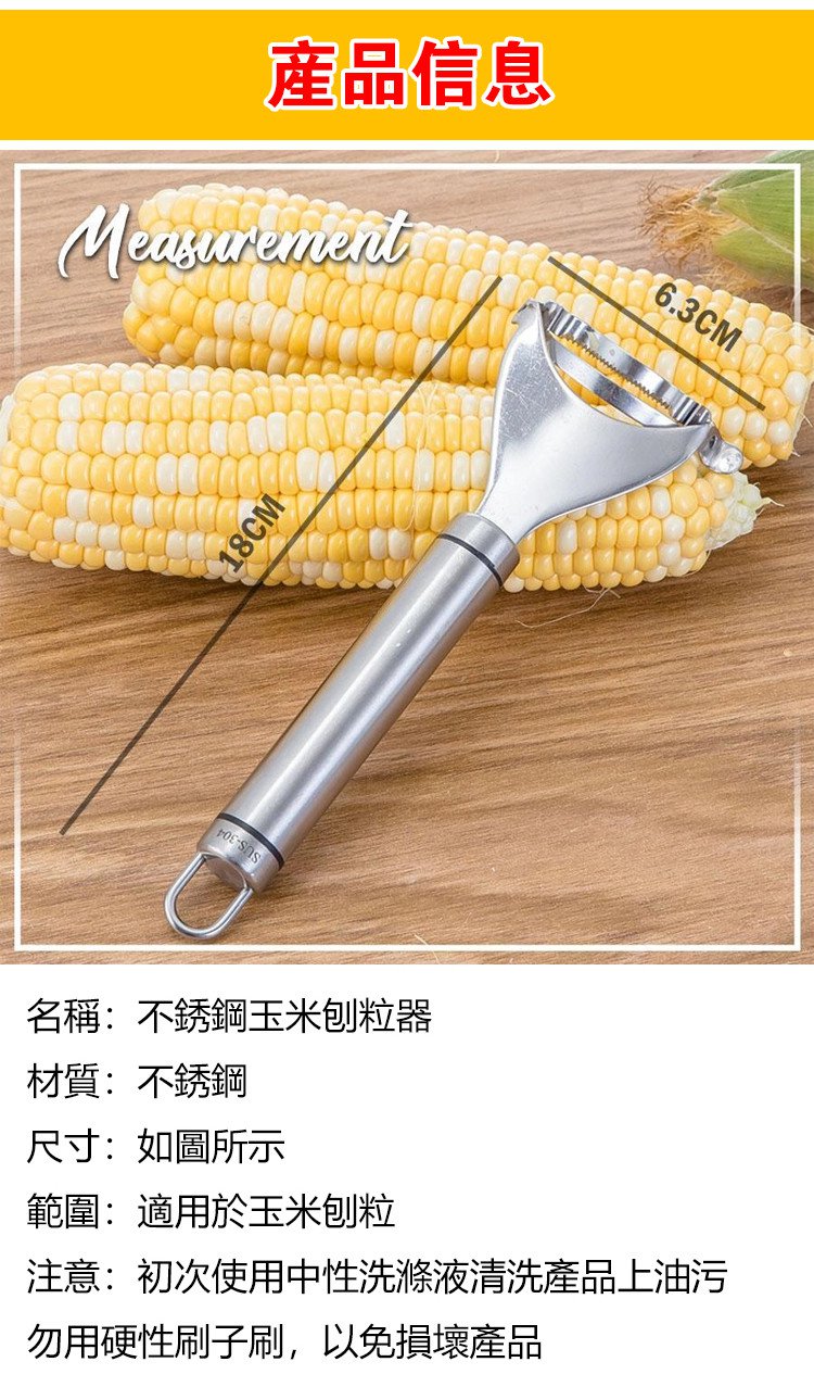 半小時前火爆熱賣 不銹鋼玉米刨粒器 鋒利鋸齒,剝落乾淨,絕不浪費 剝玉米,胡蘿蔔皮 土豆皮,304不鏽鋼材質,易於清洗 - 【新品特賣】5入組-NT$980
