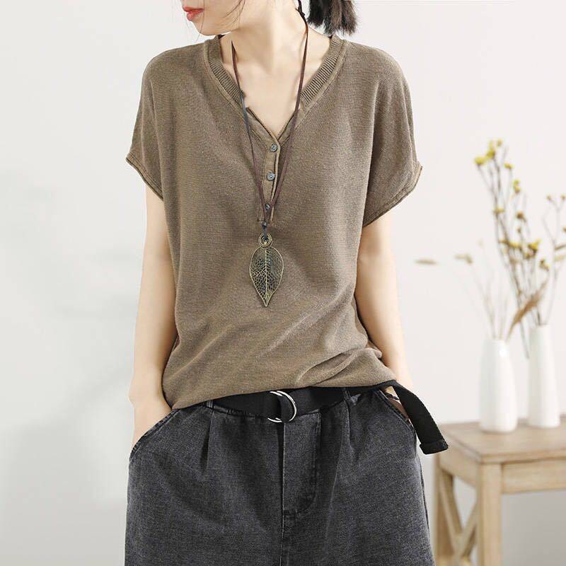 【夏季熱銷款】冰絲薄款V領短袖【超薄透氣】【舒適百搭】【促銷活動還在進行中哦!】